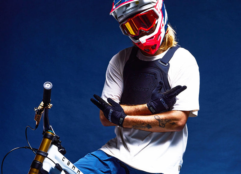 Amaury Pierron and Loris Vergier wear L/XL. At World Cups, they wear it under the jersey; at the bike park, it’s over.