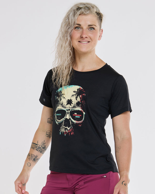 Bring some attitude to your ride with this skull-print tech tee. Made from soft, quick-drying drirelease fabric, it’s as comfortable as your favorite cotton tee but built for performance. "No Ordinary Life" on one side and "Ordinary Life" on the other. Designed for those who choose the thrill of the trail over the ordinary, embracing a life that’s anything but average.